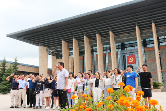 不忘初心,牢记使命。公司全体党员立于革命纪念馆的宣誓墙前,在党总支委员张海建同志带领下,党员们佩戴党徽,右手握拳,重温入党誓言,“我志愿加入中国共产党……对党忠诚,积极工作,为共产主义奋斗终身,随时准备为党和人民牺牲一切,永不叛党。”一句句庄严的承诺和铮铮誓词响彻云霄。