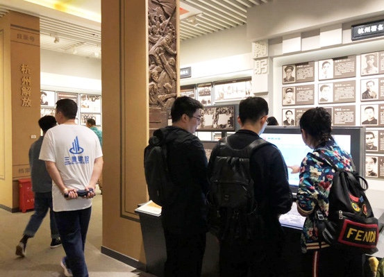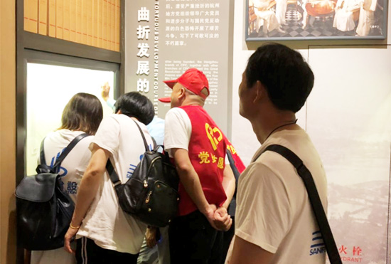 在讲解员的导引下,党员们依次参观了杭州党史馆的三个展厅。一段段珍贵的文字,一幅幅泛黄的老照片,一件件承载了历史记忆的文物,立体、生动、形象地展示了中国共产党在杭州波澜壮阔而又绚丽多彩的光辉历史。一路走、一路看,这部“走着读”的杭州地方党史,让大家深受感染和震撼。