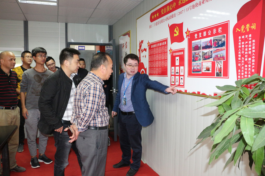 在听取项目党建工作基本情况汇报后,方总陪同陈书记等参观了项目党建活动室、爱心驿站等,同时展示了项目部发挥党建引领、党员示范取得的一系列成果。陈书记深深感受到了项目部的红色氛围,他对本项目的党建工作表示肯定,同时提出要加强与其他建设主体单位的党建联建、加强与兄弟单位的横向联系与工作交流,并要求扩大宣传,鼓励一线民工党员加入项目临时党支部,提升党员对党组织的认同感、归宿感和荣誉感。