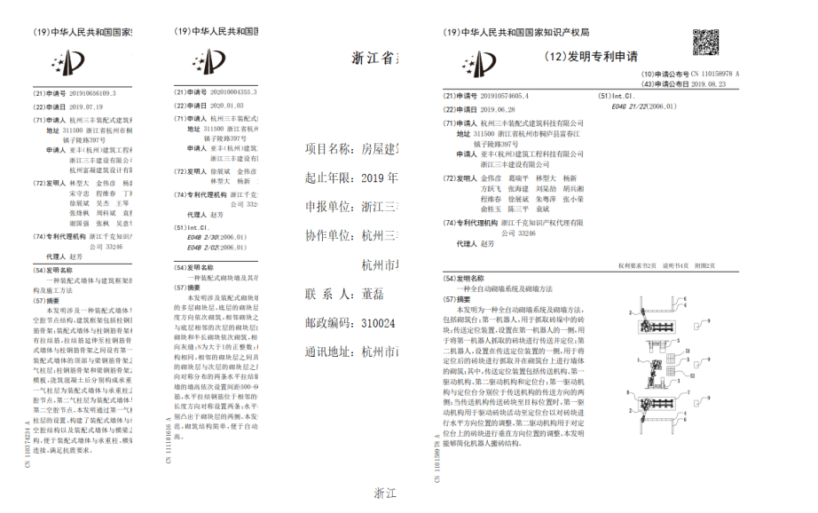 项目部临时党支部以“创新型”为特色,开展“党员创新课题攻关创效活动”,项目创新应用装配式速集墙,创新PC桩高压冲水引孔装置及PC楼板现浇段漏浆通病处理工艺等,获得发明专利三项、实用新型专利四项、参编企业标准两部、省市建设科研项目两项以及市建筑工程QC小组三等奖一项等成果。