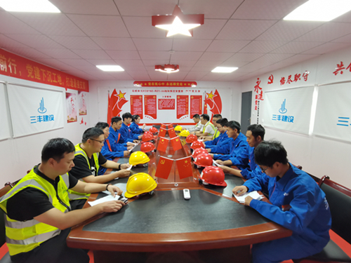 支部坚持创新,立足实干,依托三丰“四面旗帜”特色党建品牌,打造送服务、立实干、比学习、重创新的最强党支部。创新提出“12345”防疫复工管理制度。即“一个不放过、两头并进、三级教育、四项制度、五步检查”。支部面对桃源项目体量大、工期紧、临设场地小、疫情突袭等难题,特别是在三次整体搬迁临设的巨大困难下,将桃源项目打造成了公司标杆项目、省优良工地参评项目。支部积极与市总站及市区公共停车场建设发展中心等单位结对联建,开展 “传承红色基因,共建红色堡垒”、“联合党建聚合力,双百结对破百题”等主题活动。