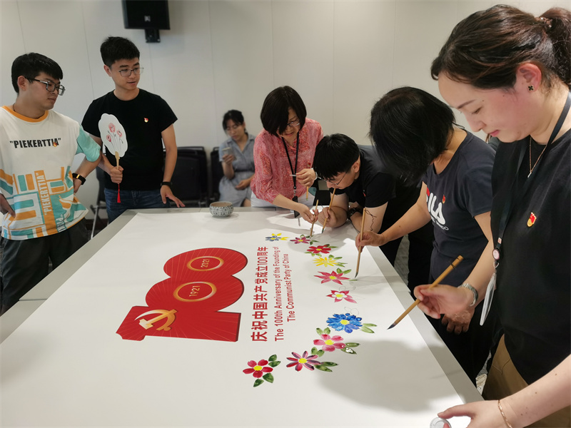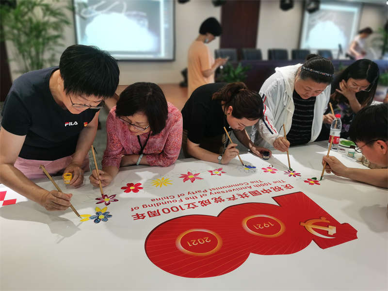 党课学习结束后,与会党员共同参与绘制建党百年红色画卷,火红的建党100周年庆典图标,炫彩的各种花卉图案,党员们用画笔喜迎党的百年华诞,赞美党领导人民在过去的100年里写下的光辉篇章,歌颂时代伟业。