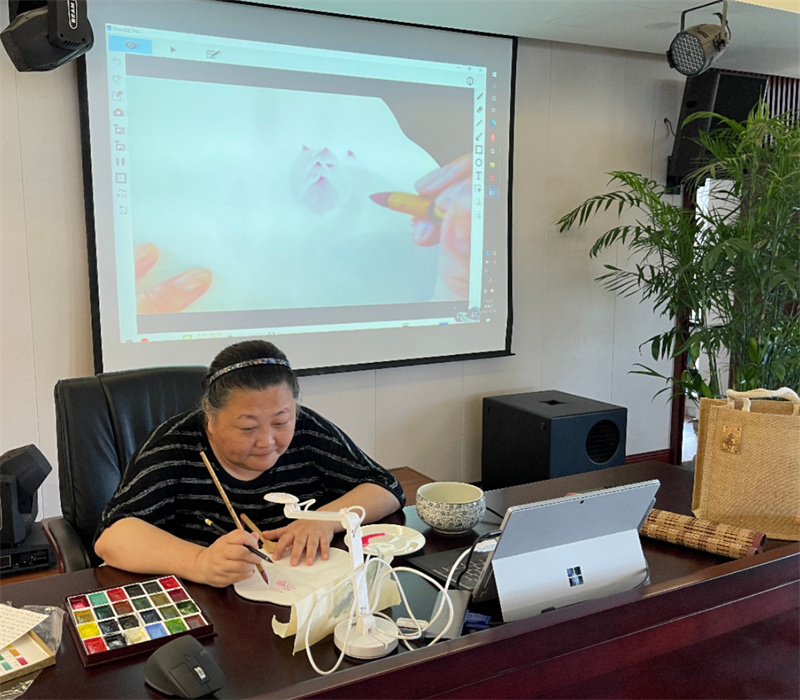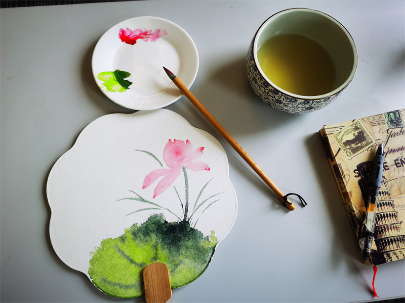 接着美术老师现场指导大家如何在团扇上描绘亭亭玉立的荷花,反映荷叶似层层绿浪,表现出娇羞欲语、美不胜收的意境。大家兴趣盎然,挥洒丹青,彰显艺术潜质。