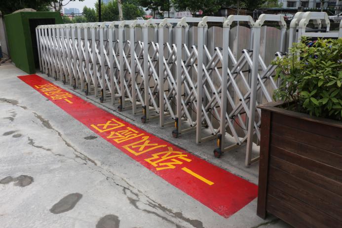 *施工主出入口采用封闭式伸缩门,进入施工现场地面涂刷安全警示标语* |