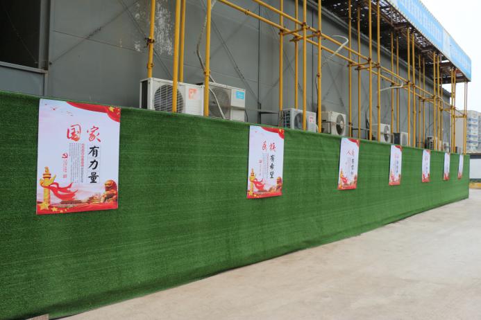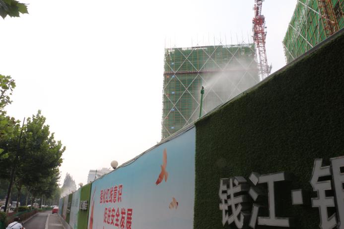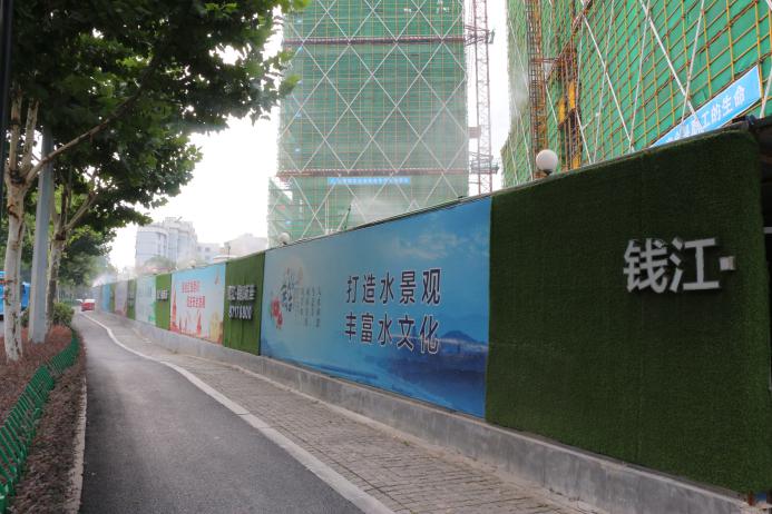 *施工围挡挂设仿真草皮,简洁美观,围墙喷淋实用高效* |