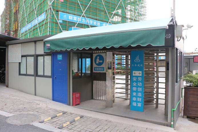 *施工出入口人员进出通道采用定型化集装箱及人脸识别考勤系统,考勤数据上传企业物联网平台,助力项目创建“西湖无欠薪”示范样板项目* |