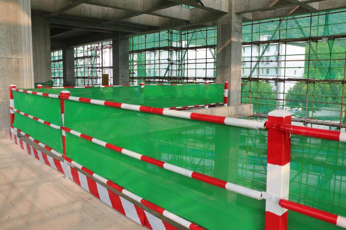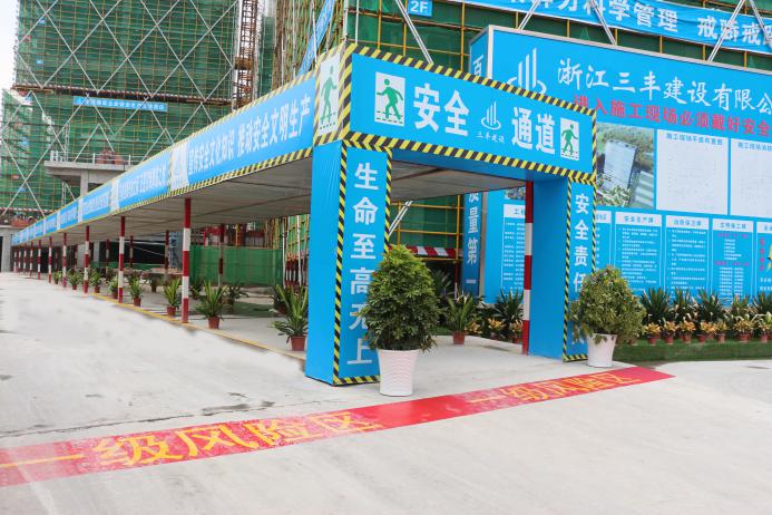 *定型化型钢安全通道贯通整个现场,安全警戒线清晰醒目,确保工人安全施工* |