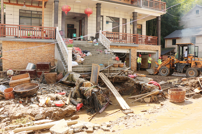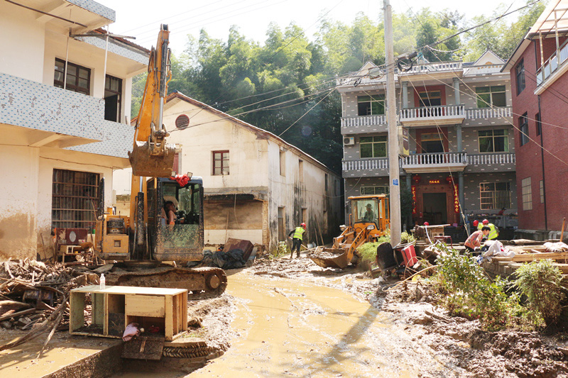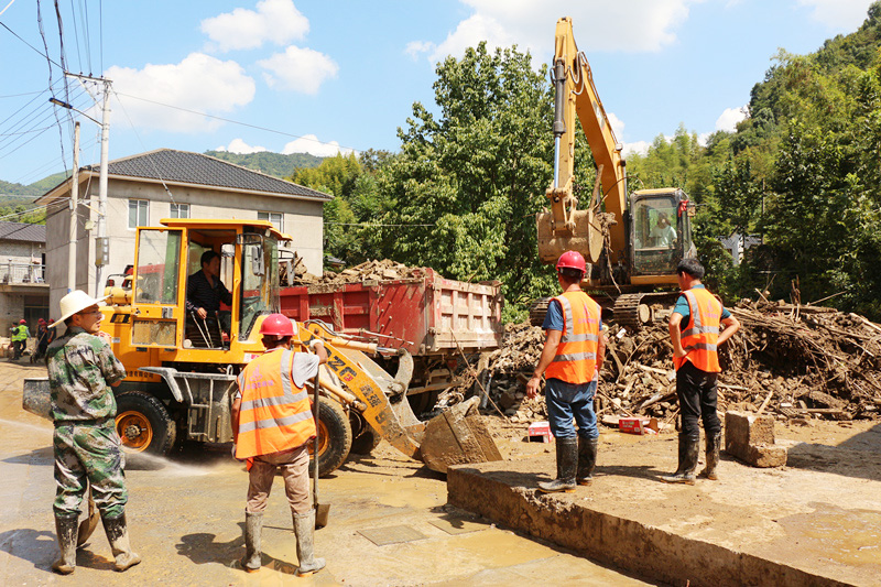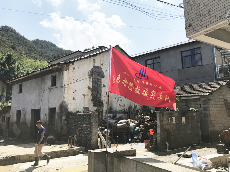 9月5日晚上9点左右,杭州临安湍口镇突发强降雨,随后临安区气象台将暴预警信号升级为暴雨红色预警信号,连续暴雨造成湍口镇三联村老坞自然村发生局部小流域洪水,村内大批房屋被淹,村道被土石淤泥堵塞,村民生命财产受到严重威胁。9月6日夜,应临安区应急管理及住建等主管部门号召,三丰建设公司立即启动应急预案,连夜集合公司应急救援突击队成员共计30余人,配置挖掘机、铲车、抽水机等应急机械设备,于9月7日清晨紧急赶赴老坞自然村灾后救援。