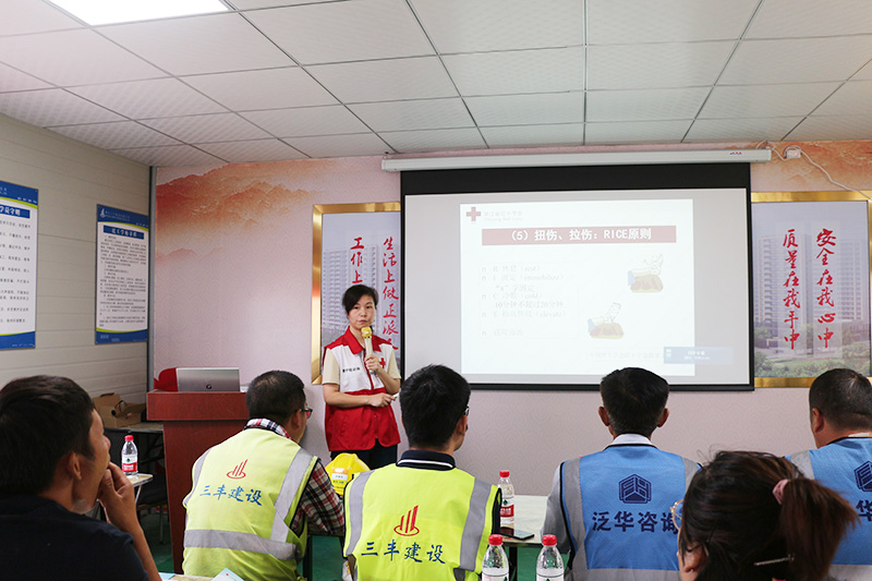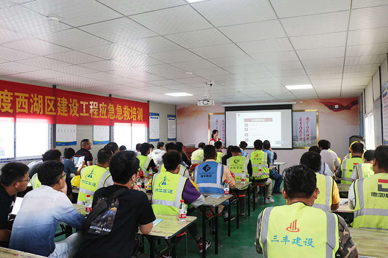 为切实增强我区建筑行业从业人员的应急急救能力,提高施工现场人员自救互救能力,9月27日上午,由西湖区住建局和区红十字会联合主办的西湖区建筑行业应急急救培训在我公司双桥单元XH0202-19地块农居安置房工程民工学校举办。三丰建设负责人方跃飞、西湖区城投集团和绿城代建有关负责人、西湖区在建项目安全负责人等近50人参加了本次培训。