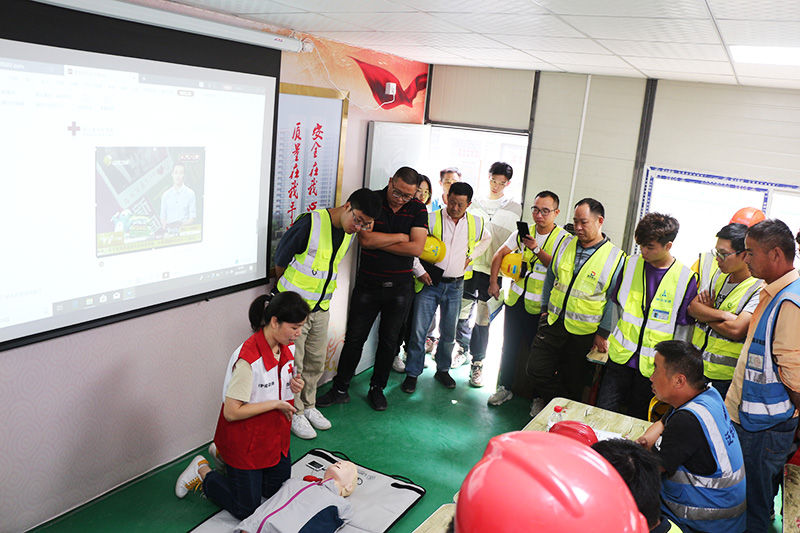 培训由浙江省红十字会救护专家娄秀芳主任授课指导,娄主任通过理论和实际操作相结合的方式,详细介绍了红十字会的发展历史和建筑行业突发事故急救知识,系统讲解了止血包扎、心肺复苏、体外除颤仪(ADE)的正确使用和就近获取等知识。她还用模拟伤员现场演示了胸外按压的位置、频率及ADE的操作方法等等,不仅对学员进行急救知识现场问答考核,还让培训人员亲身体验了实际操作,让大家对现场急救、心肺复苏有了进一步的直观感受。