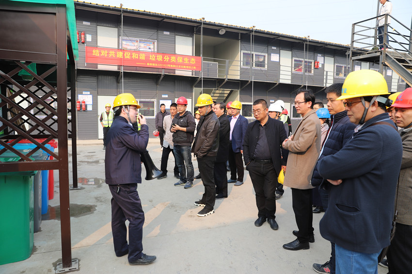 方总带领公司各职能部门分管负责人及各在建工程项目负责人等一行,先后参观了临政储出(2018)5号地块(人才公寓)项目办公生活区及施工现场。人才公寓项目在文明施工标准化实施中,充分吸收了双桥19号地块等项目的优良做法,同时也有机结合临安地方要求,在执行既有标准化要求的同时突出特色亮点,为公司文明施工标准化的进一步推进完善提供了实施依据。