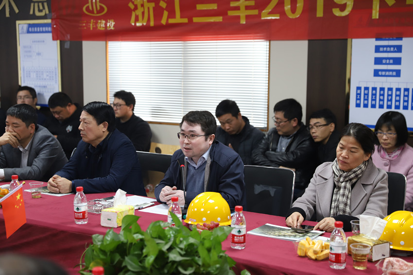 最后,公司董事长葛瑞平作了总结发言,他从自身见证三丰建设一步步做大做强出发,对比项目部今昔变化,对如今公司能涌现出临安人才公寓项目等一批优秀项目表示极大的赞许。同时,他以今年招投标及企业信用分改革为例分析了当下建筑行业面临的挑战与机遇,并进一步对公司各职能部门和项目部的各项工作提出要求,鼓励大家树立信心,向标杆项目看齐,不忘初心,砥砺前行。