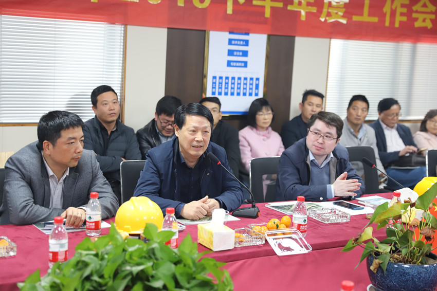 在结束现场观摩后,与会人员一行到项目会议室参加公司2019下半年度工作会议。会上,公司技术质量处副处长董磊首先就人才公寓项目概况及公司新阶段文明标化实施要求与大家做了交流分享。而后,工程部王颖华根据现阶段市标化工地及无欠薪工作的两个信息化平台实施事宜向各个项目部做了具体交底。技术中心副主任吴凌燕则向大家通报了2019年公司创优夺杯成果,并就2019年年底及2020年度创优事宜做了进一步计划。