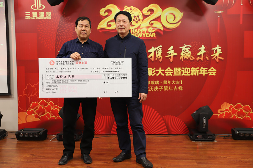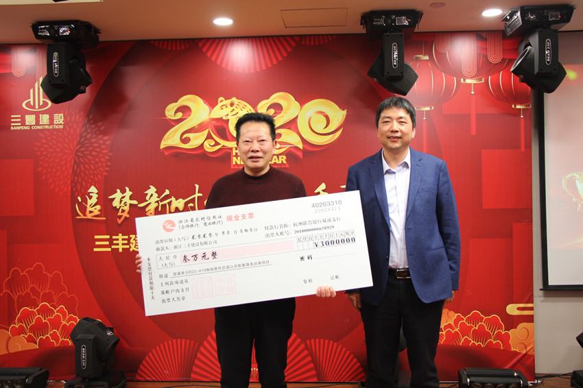 过去的2019年,是新中国成立70周年,也是三丰发展进程中极不平凡的一年,是三丰团队精诚合作、努力奔跑的一年。会上,董事长葛瑞平先生首先致新春贺词,向公司股东、员工及家属致以衷心的感谢和新年的祝福!为勤奋、智慧、有担当、敢作为的三丰人点赞!葛董带领大家回顾了公司2019年度的业绩,面对错综复杂的国际、国内和行业形势,三丰团队以诚信为本,务实为真,创新为强,各项年度管理指标有所突破:年度销售收入和新承接业务量又创新高;创获市级以上工程优质奖8项,创市文明施工标准化样板工地6项,参与杭州市十佳民工学校演示评比2项,杭州市建设行业系统“最强支部”1个;分别在双桥单元19号地块项目和临政储出(2018)5号地块(人才公寓)项目举办了高水准的安全文明施工标准化观摩会;三丰装配顺利完成研发、试生产和展示工程实践,取得了阶段性成果……