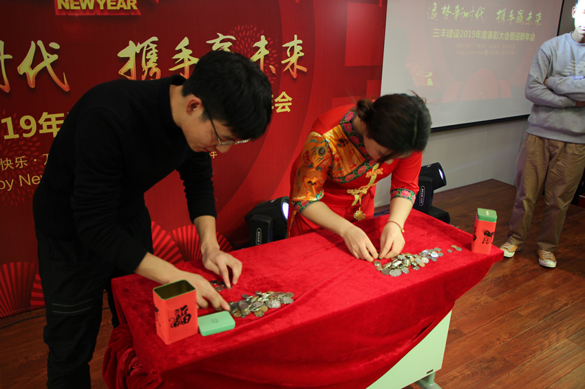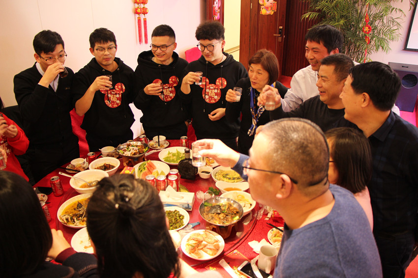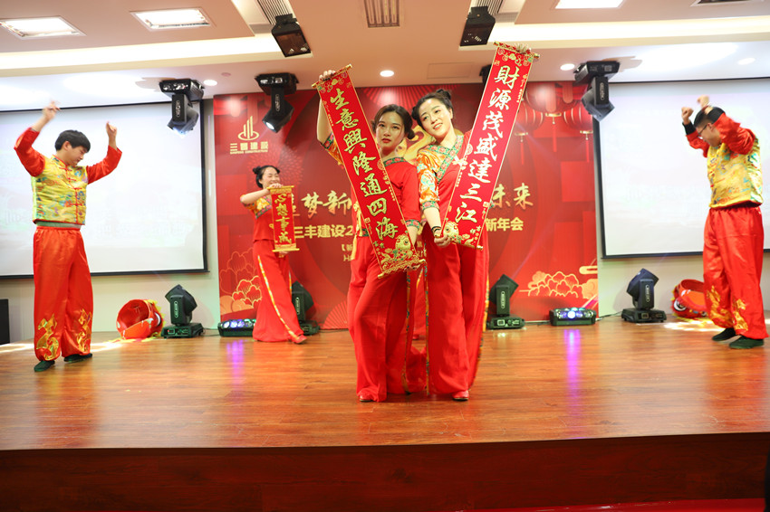 公司晚会在一曲有三丰特色、振奋人心的《撸起袖子加油干》中开场,在方总激情洋溢、亦庄亦谐的主持下,晚会节目精彩纷呈,闪亮登场。三丰家人们同吃年夜饭,共饮幸福酒。