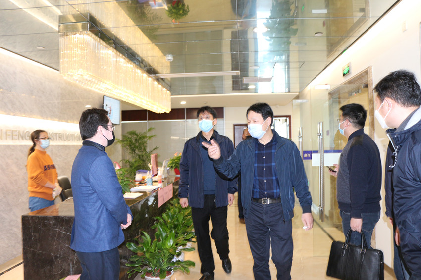 2月25日上午,西湖区政府党组成员、之江度假区管委会副主任王波、西湖区住房和城乡建设局副局长高月虹一行来到之江发展大厦公司总部,走访调研企业防控疫情工作和开复工情况。公司领导葛瑞平、方跃飞陪同检查,并向区领导详细介绍了三丰建设的防疫工作开展情况和开复工的一系列准备。