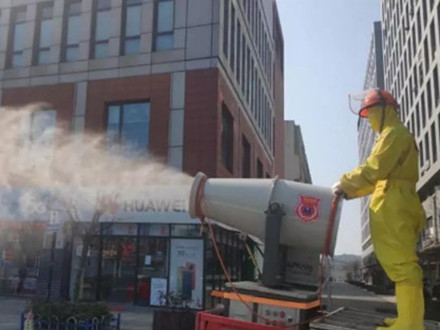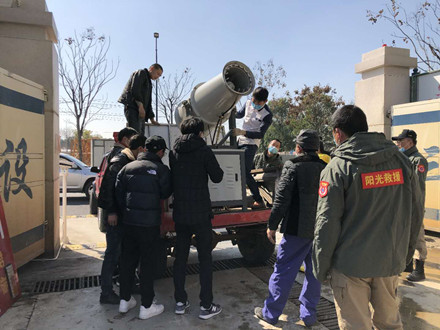 2月20日,公司接到区应急管理局紧急通知,配合提供防疫设备(雾炮)并完成调试。杭政储出【2017】13号地块商业用房项目部立即响应提供雾炮,专业人员连夜调试,但该设备指标不相匹配,公司又紧急从临安人才公寓项目部调来第二台设备,最终拆改调试完成,完美交付给阳光救援队。消杀雾炮在西湖区的商业城、车站等公共场所环境消杀中发挥重大作用。