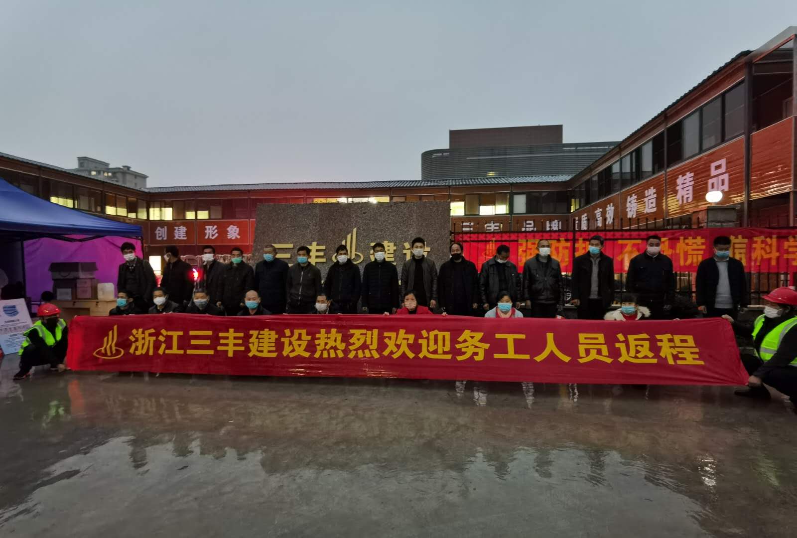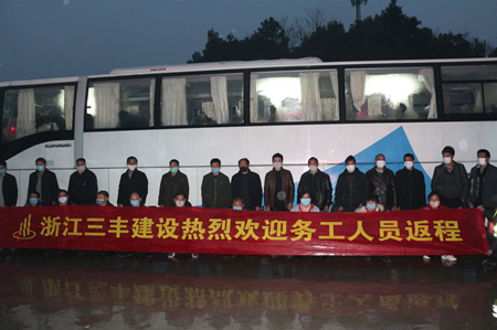 疫情发生以来,三丰建设坚决贯彻落实中央、省、市、区决策部署,一手抓疫情防控、一手抓复工复产,在全力做好疫情防控前提下,主动作为,精准服务,公司及项目部组织“点对点一站式”专车直达返程服务,迎接工人返岗,全力推进各工程项目复工复产,力争“两手都硬、两战全胜”。