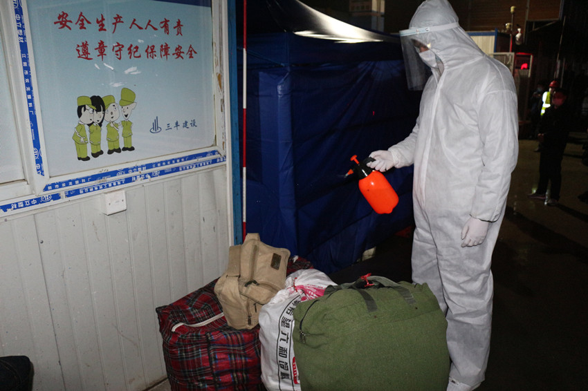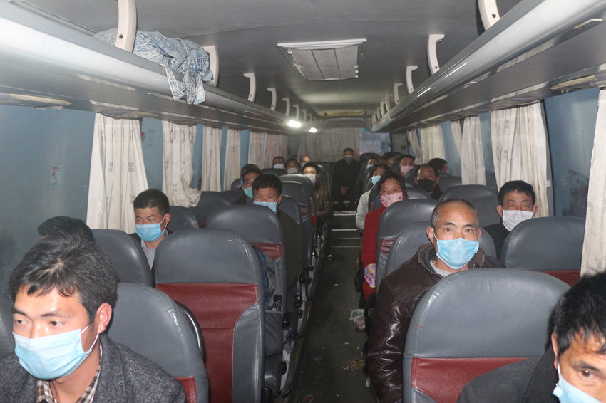 因务工人员疫情期间出行不便,公司及项目部在上级政府助力下,组织“点对点一站式”专车直达返岗服务。出发前,对车辆进行了全面消毒,每辆车还配备了消毒液、电子体温计等,并要求司乘人员戴好防护口罩,上车前进行体温检测,同时,按照车辆核载数的50%控制客座率,分散就坐,降低交叉感染的风险。