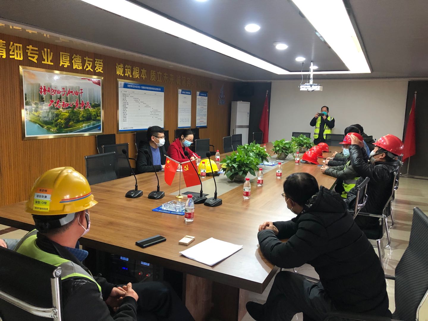 随着疫情的缓解,公司各建筑工地相继开始了复工,大量务工人员将返工上岗。公司及项目部提前准备,制订了复工方案和应急预案,搭设了防疫点,配备了大量防疫物资,并将食堂、宿舍作为重点区域管控,做好疫情防控工作。