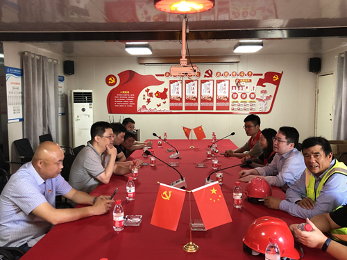 慰问结束后,联建双方就桃源项目工程建设推进事宜及第三季度工作安排进行了座谈交流。