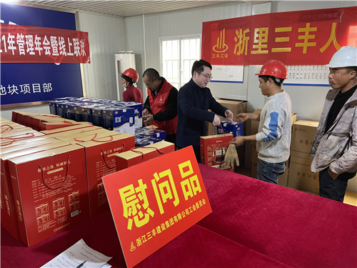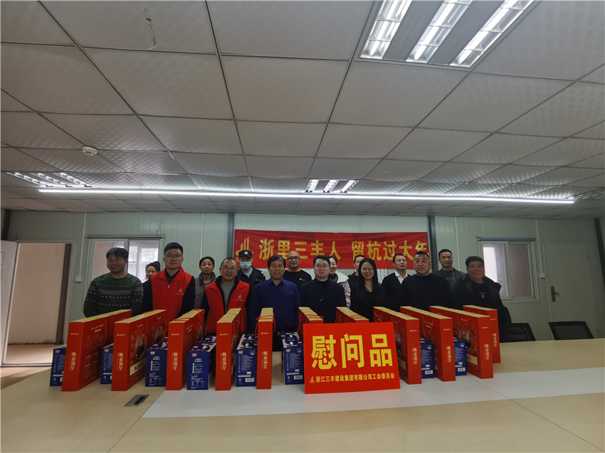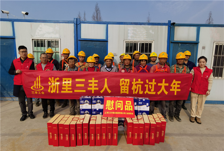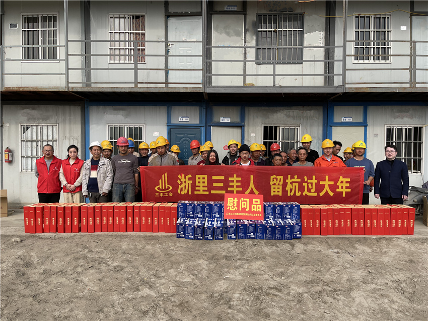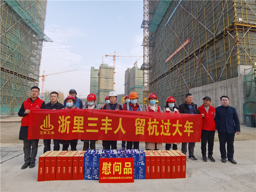 2月7日,三丰建设集团党总支、工会联合开展留杭过年一线职工慰问活动。集团领导方跃飞带队前往杭政储出[2017]33号地块施工总承包工程、余政储出(2019)45号地块开发项目、余政储出(2019)33号地块工程、富政储出(2018)19号地块项目、沪杭甬改建工程站房施工等项目部,看望慰问春节期间坚守工作岗位的留杭外来一线职工,为他们送去新春的祝福。
