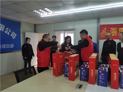 在项目部,方总为仍在忙碌的项目管理人员和建筑工人们送上了慰问品,并深入了解目前的工程情况,充分肯定了项目部管理人员和工人们的工作状态和工作热情,感谢他们春节期间坚守本职岗位,为共同建设品牌三丰、美丽杭州作贡献,希望他们安心留在杭州过年,如有困难积极沟通,公司一定会及时协调解决。方总叮嘱他们节日期间依然要重视疫情防控,施工要严把安全生产关,杜绝安全隐患,做好外来人员管控,确保工程建设安全可控,过一个平安祥和的春节。
