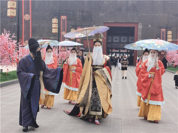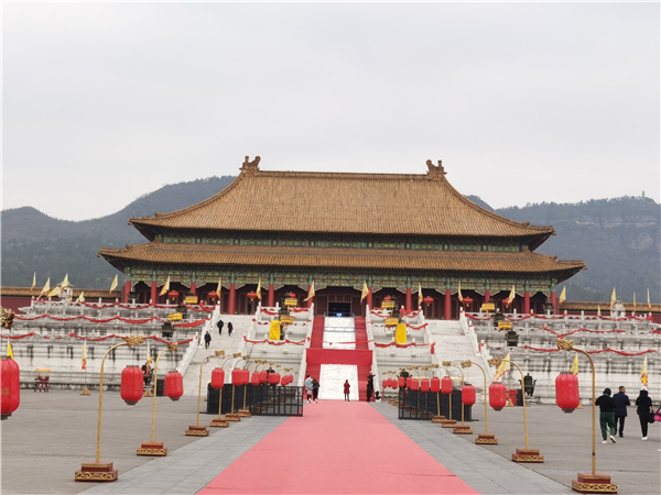秦王宫整个景区再现秦汉时代的街肆风貌,行走其中,仿佛切身感受到了秦王朝气吞山河的壮丽场面。