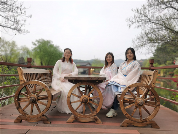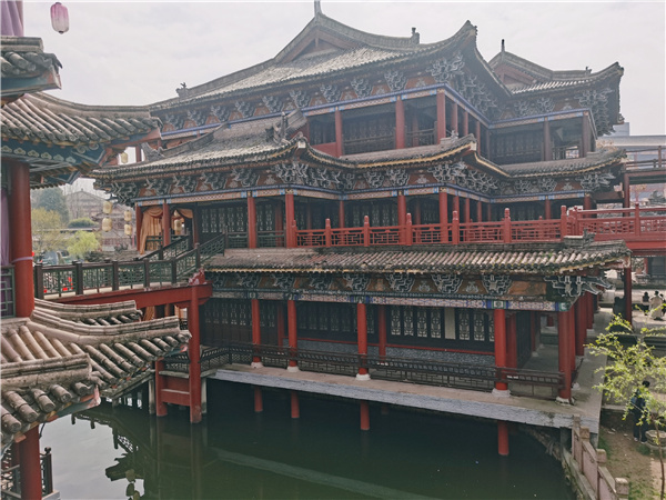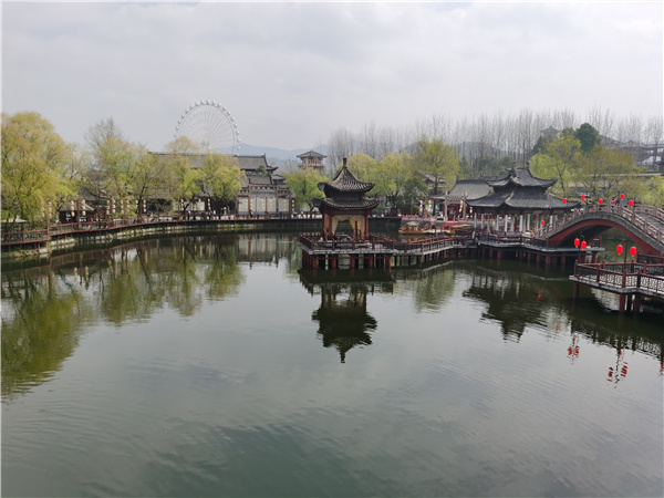 清明上河图,城中 “汴河”蜿蜒,北宋风情的桥梁亭台沿着水岸展开,颇有几分诗情画意。不仅能感受宋代繁华的京都与市井,亦能在街头巷陌寻得不少古装剧中似曾相识的场景,换上汉服的美女同事们,更是 “一朝步入画中,仿佛梦回千年”。