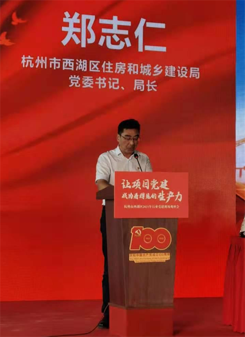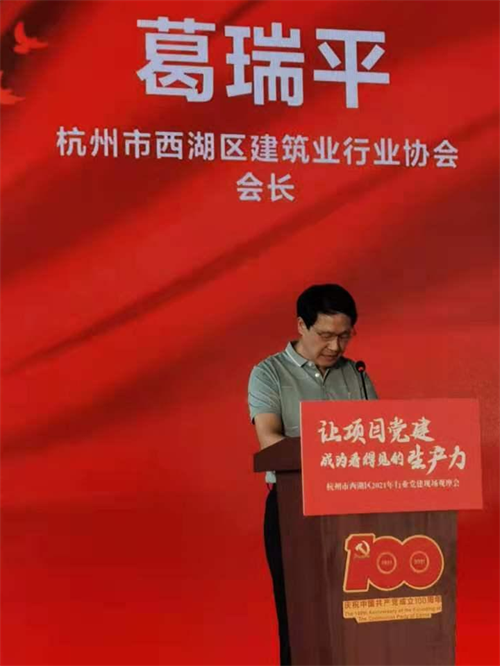西湖区建筑行业协会会长(三丰建设集团董事长)葛瑞平作“让项目党建成为看得见的生产力”活动倡议。