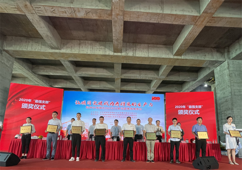 会议对获得2020年度最强支部单位颁奖。三丰集团双桥农居安置房项目临时党支部、青山湖科技城人才公寓项目党支部获得表彰。