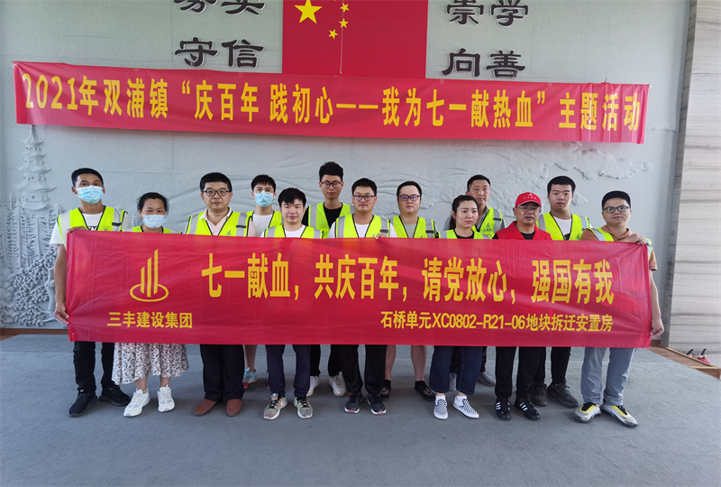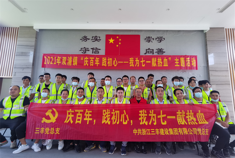 为纪念中国共产党建党百年华诞,继续弘扬无私奉献精神,三丰建设党总支积极响应上级部门的活动号召,组织公司及各项目部党员、职工参加2021年“庆百年,践初心——我为七一献热血”活动。
