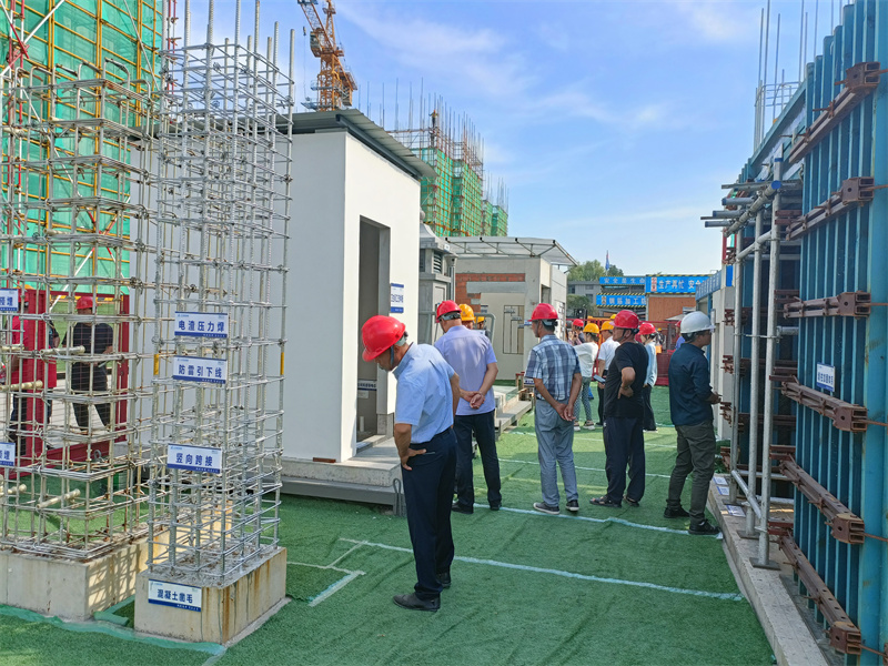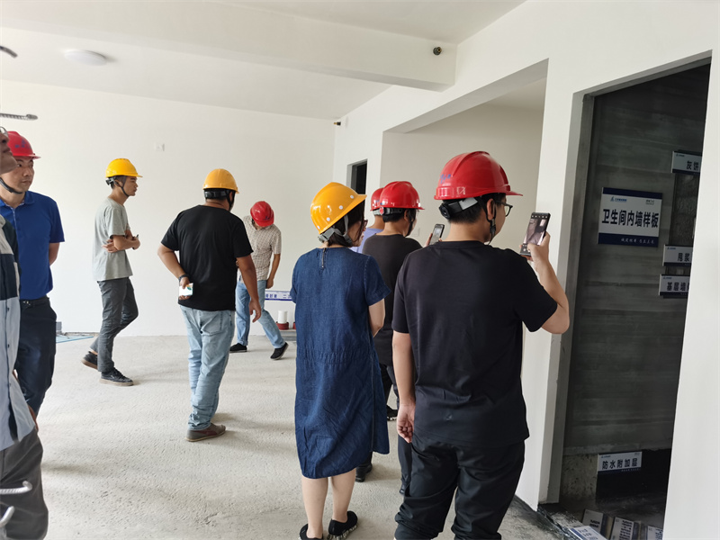 会议开始前,方总带参会人员参观了石桥单元XC0802-R21-06地块拆迁安置房项目施工现场。本工程现场设置的安全体验区、工艺样板区以及实体交付样板区是项目质量安全管理一大亮点。此外,本工程在安全文明施工标准化2.0版管理实施中也交出了令人满意的答卷。