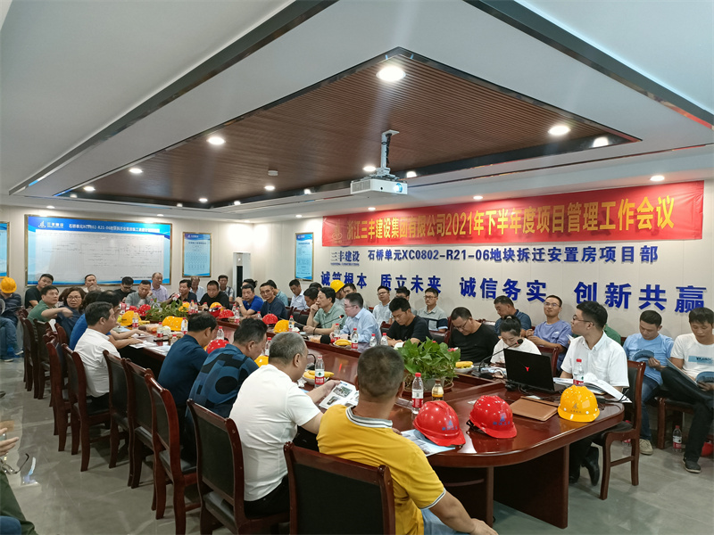 在结束现场观摩后,与会人员一行到项目会议室参加集团2021下半年度项目管理工作会议。