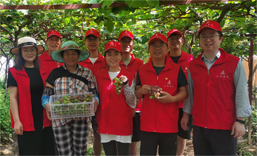 听闻这个消息,三丰建设集团立即组织青年志愿者,在公司领导方跃飞的带领下,于8月4日上午前往三阳村王彩兰家的葡萄园采摘、购买。