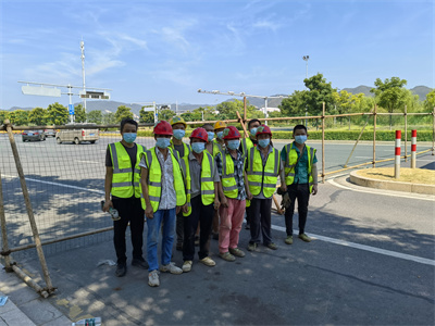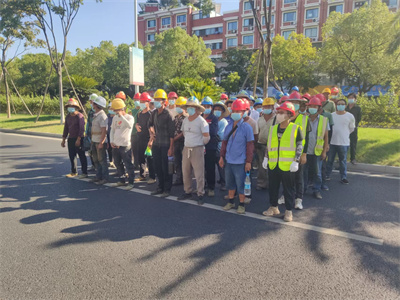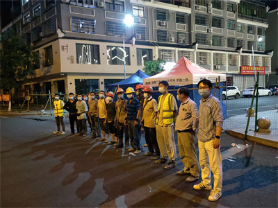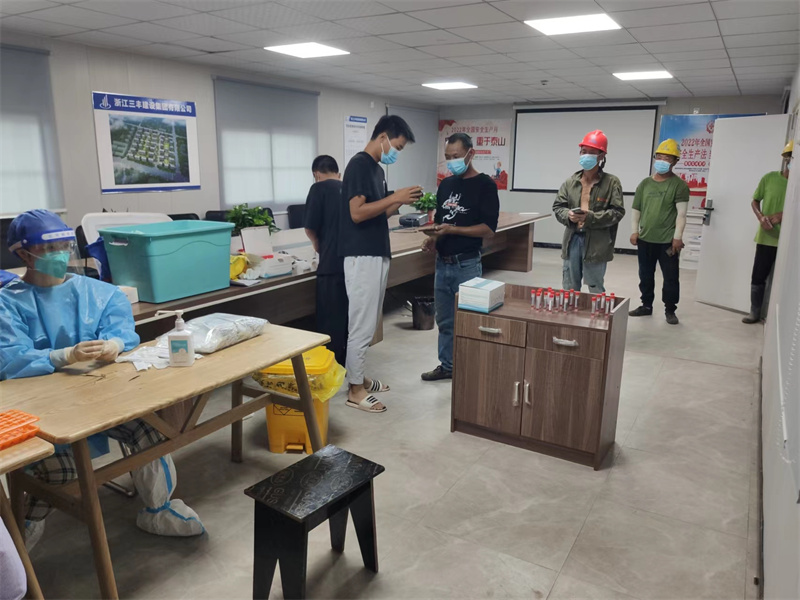 强化外防内控,全力做好疫情防控工作。集团项目部在外帮助筑起隔离围栏,对内严格落实防控工作。工人们在项目管理人员的引导下,有序完成测温、扫码、登记、采样等每日工作,尽管天气炎热,大家有序排队等候,丝毫没有怨言。