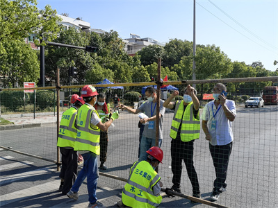 公司义乌市国贸大道与宾王路交叉口东侧地块工程、新社区集聚北苑街道第二集聚区地块二工程及北苑街道春晗路与宾王路交叉口西南侧地块住宅小区(二标)等项目部,先后出动近300余人次,参与硬隔离突击任务,落实“硬隔离”和强化“卡口”管控的措施,连续作战17天,充分发挥“三丰铁军”优势,对部分小区道路设立围栏,用一根根钢管、一张张铁丝网,筑起一道道防疫“安全墙”。