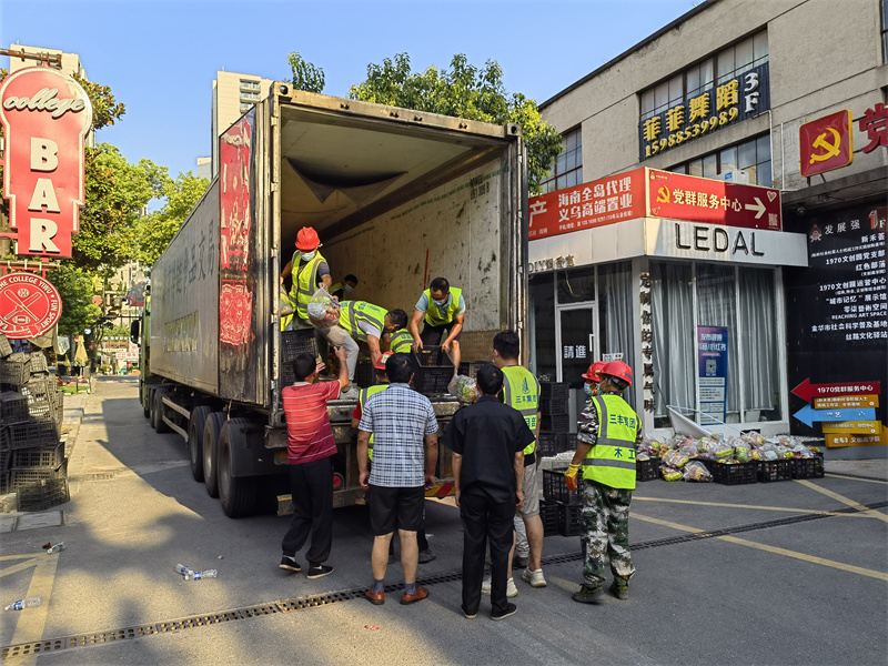 8月11日0时起,义乌实行临时性全域静默管理,物资需求巨大,集团在义乌项目部又积极派出志愿服务队,主动帮助车站、社区装卸物资,得到当地主管部门和群众的一致好评。
