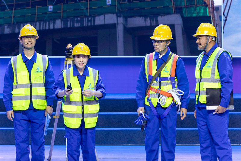 公司展演团队基于当下各级主管部门大力推进建筑业高质量发展,项目管理均以党建引领、技术创新、管理创新为基础的大背景下,从公司及项目管理的几个细节为切入点进行宣讲和展演。公司各项目部安装了智慧工地系统,用物联网和AI等技术把施工现场的各类设施设备联网并实现有效管理,提高了项目的管理水平;在项目民工学校开展技能培训班,公司的劳模工匠、高级工程师们均会到场授课,做到不出工地,工人们也能接受到高质量的培训;公司推行能级工资协商制度,调动了员工的工作热情,促进公司的持续发展。