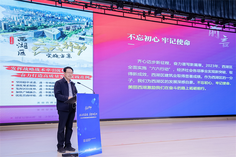 首先,通过观看宣传片,与会人员一起回顾了2023年西湖区全力推进高颜值城乡行动取得的丰硕成果。