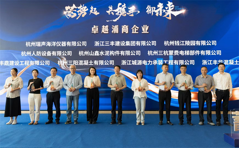 双浦镇2024年“蓄势起 共携手 御未来”浦商大会隆重召开。会议对新锐浦商、优秀浦商、卓越浦商进行了表彰。西湖区常委、常务副区长高卫星为卓越浦商企业颁奖。