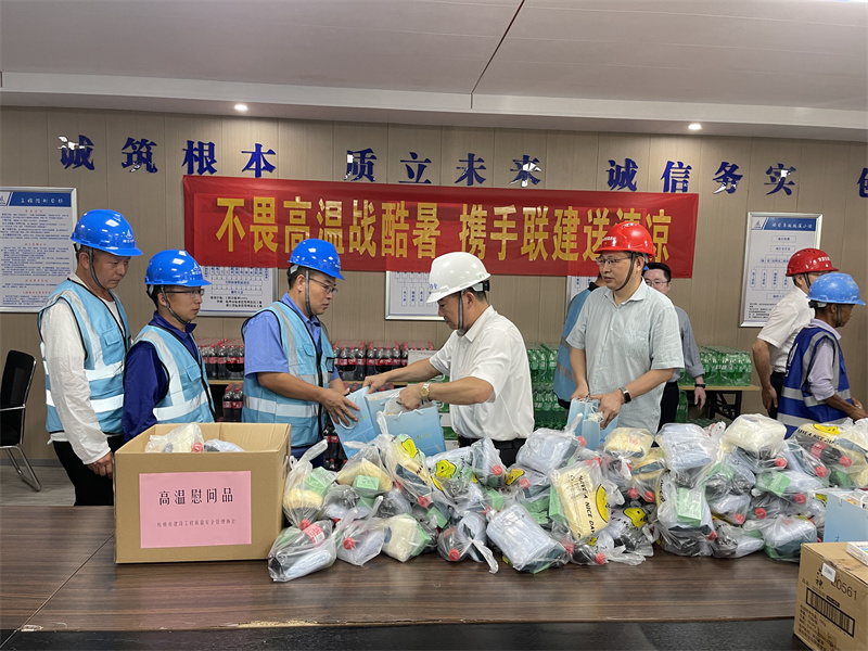 市质安总站、市质安协会领导为工人们送来了防暑降温慰问品,感谢他们为杭州的城市建设和社会发展做出贡献,并对工人们战高温、斗酷暑、攻坚克难,确保重点工程顺利快速推进的精神致以敬意和问候,同时叮嘱项目部在当下高温作业及基坑土方施工阶段,要严格落实各项安全生产保障措施。