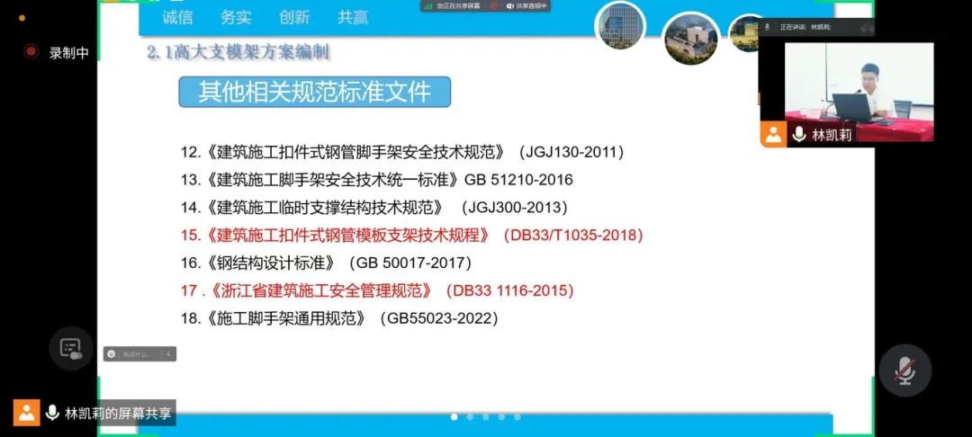 此次培训由来自三丰建设集团的西湖区劳动模范、高级工程师董磊主讲,课程主题是《质量安全管理和危大工程专项方案编制》。