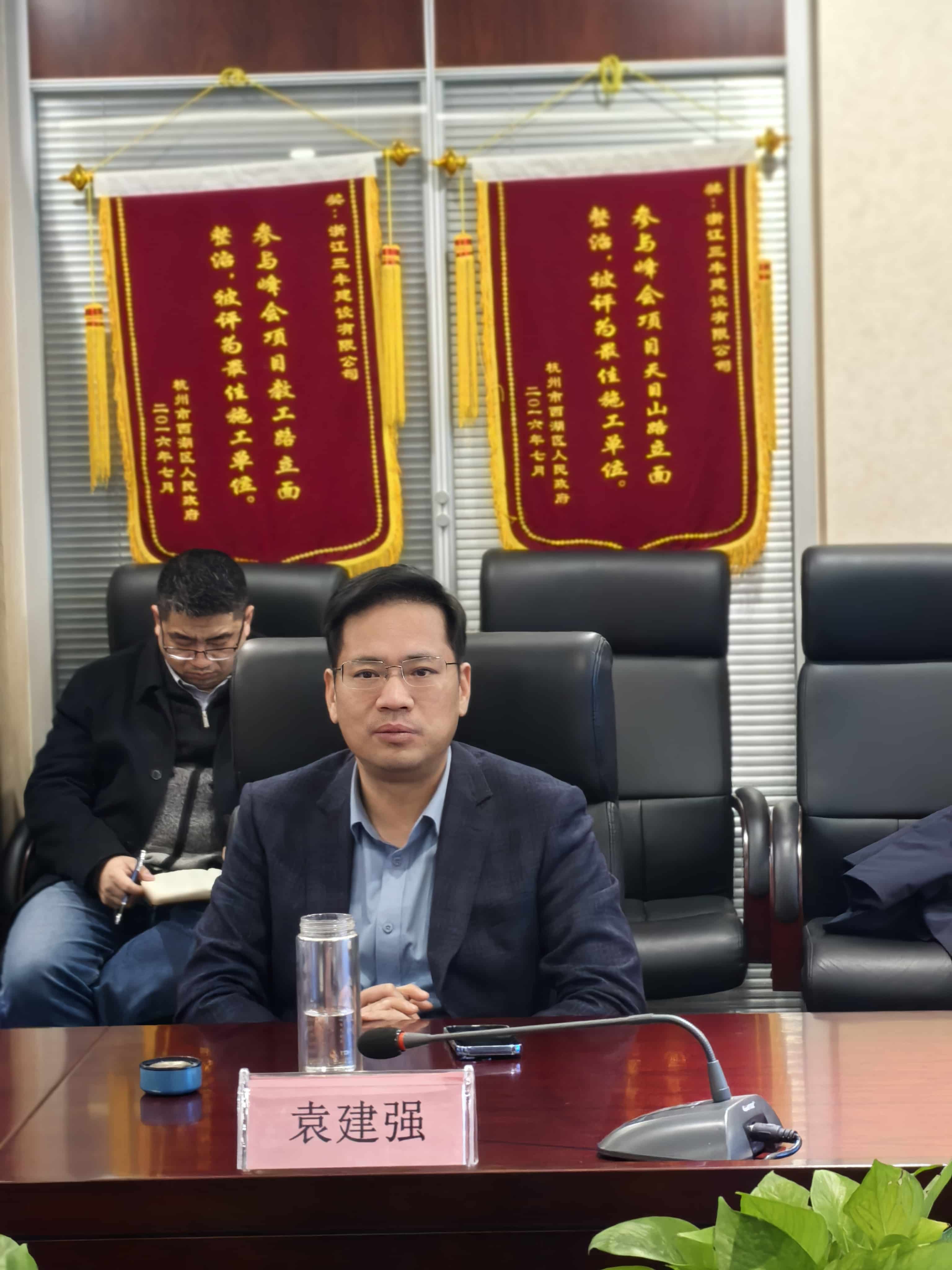 董事长葛瑞平对袁区长一行的来访表示欢迎,就区政府及相关部门一直以来对集团的关心和支持表示感谢,并介绍了集团发展历程、经营业务、高新技术以及2024年主要经济指标完成情况。葛董表示将继续发挥区建设行业协会会长单位表率作用,持续助推西湖区经济社会发展。