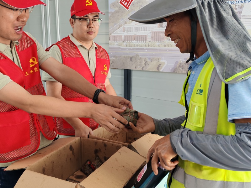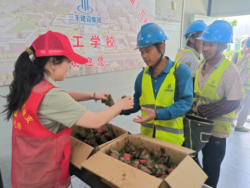 端午送粽子活动,送的不仅仅是粽子,还有对民工兄弟们节日的慰问,更是对他们真切的关怀。在紧张忙碌的施工过程之外,工人们感受到了传统文化的魅力和三丰大集体的温暖。