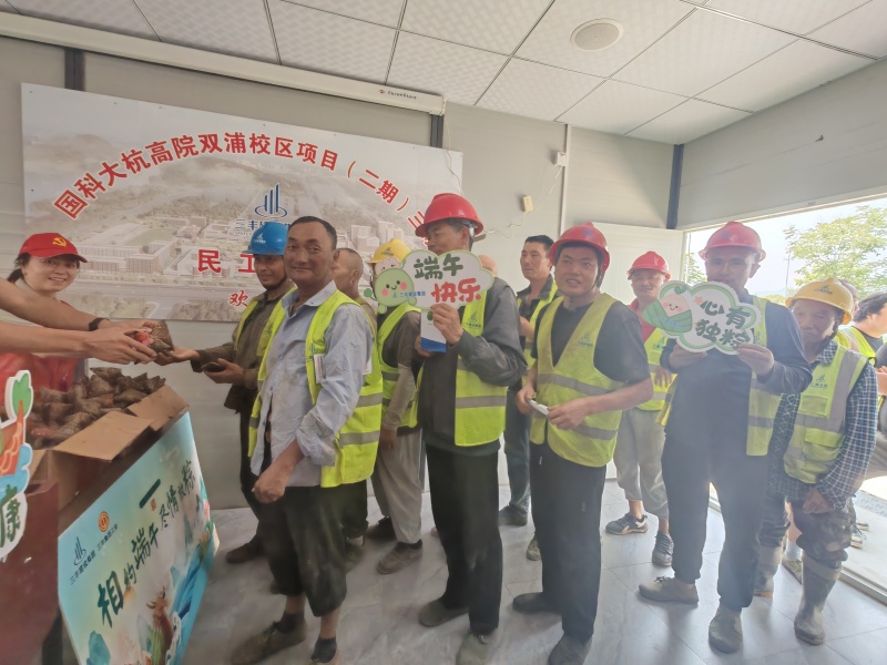 端午佳节至,粽香飘工地。为弘扬中华民族传统文化,让坚守在施工一线的工人们感受到节日的温暖与关怀,5月30日中午,国科大项目部在民工学校开展了温馨的端午节粽子分发活动。