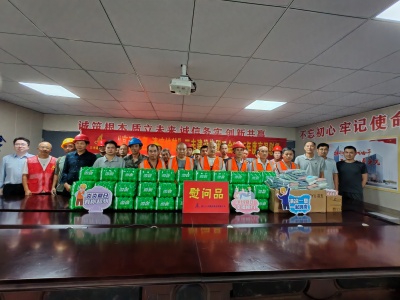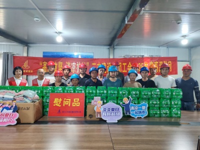 慰问组一行为工人们送上饮料、肥皂、毛巾等防暑用品,并叮嘱大家注意劳逸结合,做好个人防护和防暑降温措施,加强作业安全,确保身体健康。项目负责人表示,工地已调整作业时间,避开高温时段,并设置休息凉棚、提供绿豆汤等防暑措施,确保安全生产。