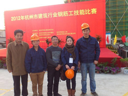 2012年12月6日,由杭州市城乡建设委员会主办,杭州市建筑企业管理站、杭州市建设工会、杭州市建筑业协会、杭州经济技术开发区建设局承办的“2012年杭州市建筑行业钢筋工技能比赛”在杭州经济技术开发区(下沙)大学城城北人才专项用房项目工地现场隆重举行。我公司代表队在共二十一支代表队中脱颖而出,取得总分第四、团队三等奖的佳绩。