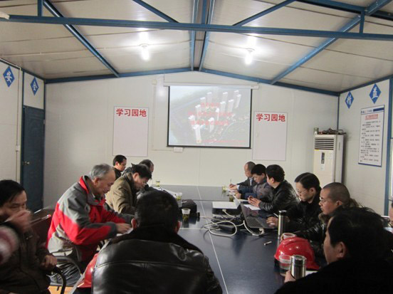 在会议室,公司副总兼总工赵建国首先对协会服务会员、协助企业加强质量安全管理表示感谢。他介绍了公司安装工程管理工作动态,工程主要质量目标及本工程已获得的荣誉等情况。协会石修仁、刘波平两位高级工程师对本项目现场已完成的安装工作给予了充分肯定,对安装创杯工作的要点、注意事项及新规范新要求做了简要说明提醒,同时也对本项目今后的工作做了进一步补充交底;对后续尚未完成的安装工作做出了详细的指导,对进一步加强消防施工、支架施工、开关安装位置等的质量控制要求提出了改进建议。刘秘书长在会中指出,本工程的安装创优工作得到了总包单位、建设单位、监理单位及相关专业分包配合单位的重视,是值得肯定的,希望在今后的工作中加强工序的预先策划,精工细作,把好各工序验收关,努力将本工程建设成为文一西路标杆性住宅项目。