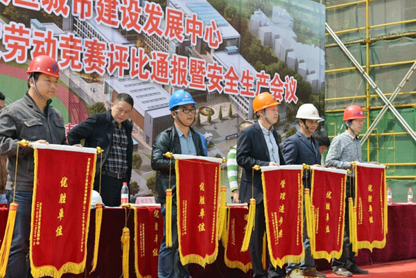 随后,杭州经济技术开发区城市建设发展中心领导宣读了2013年四季度、2014年一季度劳动竞赛评比通报文件,并给受通报表彰的施工及监理项目部颁发了锦旗,我公司学正中学项目部荣获劳动竞赛评比第一名,并荣获开发区建设安全生产先进单位(项目部)。之后,下沙质量安全监督站领导及中心领导均围绕安全生产及标准化作业方面作了重要讲话。最后与会人员参观了我下沙学正中学施工现场,并给予一致好评。